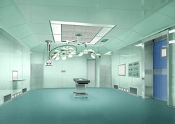 層流手術室不僅要求高度潔凈的空氣(進入手術室的空氣首先須經高效過濾器凈化),而且要求能控制氣流的流通方向(即采用層流超凈裝置),使氣流從潔凈度高的手術區域流向潔凈度低的區域,并帶走和排出氣流中的塵埃顆粒(塵粒)和細菌;層流是一股細小、薄層的氣流,以均勻的流速向同一方向輸送;凈化氣流的方向分為垂直層流式和水平層流式兩種。垂直層流式(Supply air ceiling for operating theatre)高效過濾器裝在手術病床的正上方,氣流垂直吹送,回風口設在墻面的四角,確保手術臺潔凈度達標,一般多采用垂直層流式效果較好層流手術室是一個"正壓"環境,其空氣壓力根據其不同區域(如手術間、無菌準備間、刷手間、麻醉間和周圍干凈區域等)潔凈度不同要求而不同。